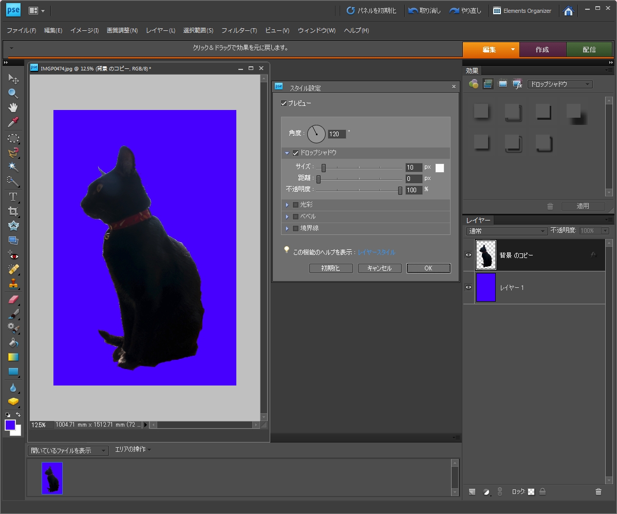 ドロップシャドウを付ける段階で詰まってしまいました・・・><