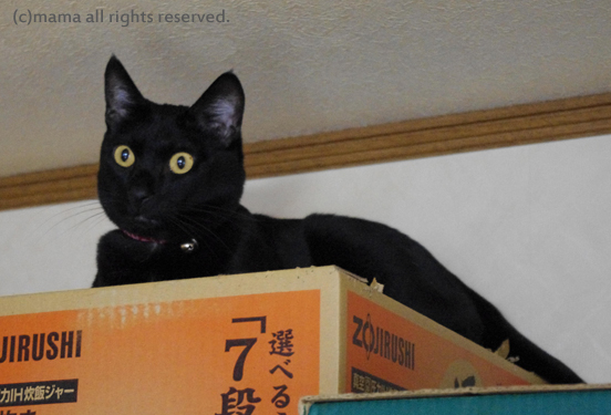 最後に、久しぶりに食器棚の上まで登りついて大満足のnero!